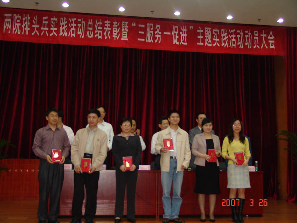 3月26日下午,中科院廣州分院、廣東省科學(xué)院召開了兩院排頭兵實(shí)踐活動總結(jié)表彰大會。我院干細(xì)胞與再生醫(yī)學(xué)中心秦寶明、人事處徐瓊兩同志在本次活動中被授予 “崗位排頭兵”的光榮稱號,并在大會上受到表彰?!芭蓬^兵”活動是繼保持共產(chǎn)黨員先進(jìn)性教育活動后,中共廣東省直屬機(jī)關(guān)委員會組織開展的又一活動,旨在要求廣大黨員和省級機(jī)關(guān)的同志在各項(xiàng)工作中起到模范帶頭作用,當(dāng)好“排頭兵”。秦寶明、徐瓊兩名同志愛崗敬業(yè),團(tuán)結(jié)進(jìn)取,樂于奉獻(xiàn),以排頭兵的精神,分別在科研與管理崗位上為廣州醫(yī)藥院的籌建與發(fā)展做出了積極的貢獻(xiàn),經(jīng)過我院黨組織推薦獲得表彰。