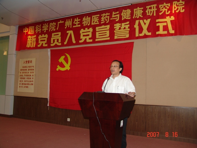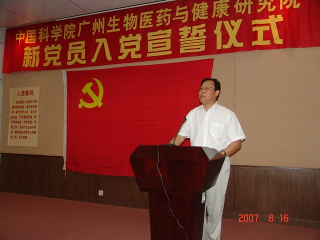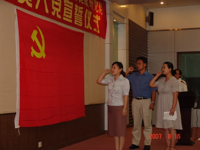 最后,黃建沖書記作了重要講話。他指出,宣誓儀式對于新入黨的同志,是其生命歷程中具有重要紀念意義的光榮時刻;對于已經(jīng)入黨的同志,是重溫入黨誓詞的活動;對于入黨積極分子,是一堂生動的黨課教育。他在講話中回顧了黨的光輝歷程,并指出,做一名共產(chǎn)黨員是光榮的、自豪的,要牢記肩負的責(zé)任和使命,要在任何時候把國家的利益、民族的利益、人民的利益放在首位,要做到思想上始終清醒、政治上始終堅定、作風(fēng)上始終務(wù)實、工作上不斷創(chuàng)新。他在會上分析了我院建院工作所取得的成績和具備的優(yōu)勢,同時指出了研究院在可持續(xù)發(fā)展中面臨的一些困難和不容忽視的問題。黃書記強調(diào),我們要切實加強研究院黨組織的思想建設(shè)、組織建設(shè)和作風(fēng)建設(shè),要堅定不移、扎實有效地發(fā)揮黨委的政治核心作用,黨支部的戰(zhàn)斗堡壘作用和黨員的先鋒模范作用,要將優(yōu)秀的科研人員、管理人員、研究生吸收到黨內(nèi)來,壯大黨的力量,要不斷提高黨組織的戰(zhàn)斗力和凝聚力,為研究院的發(fā)展提供強有力的保障。他強調(diào),全體黨員要以國家利益和民族利益為重,以研究院建設(shè)和發(fā)展的大局為重,增強服務(wù)國家目標(biāo)的責(zé)任感和自豪感,增強建設(shè)一流研究院的緊迫感和使命感,號召黨員同志在本職崗位上努力工作,唯真求實,勇于拼搏,多做貢獻,以實際行動迎接黨的十七大的勝利召開!