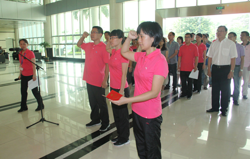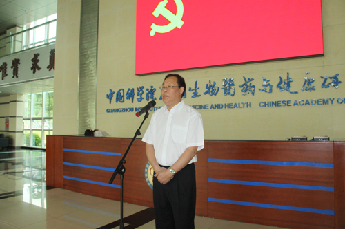 6月27日下午,中科院廣州生物醫(yī)藥與健康研究院藥物開發(fā)體系(DDP)黨支部在研究院大廳隆重舉行了新黨員入黨宣誓儀式。儀式由黨支部書記劉小蓉主持,院黨委書記黃建沖、黨支部全體黨員、全院入黨積極分子和其他團(tuán)隊黨支部黨員代表參加了儀式。