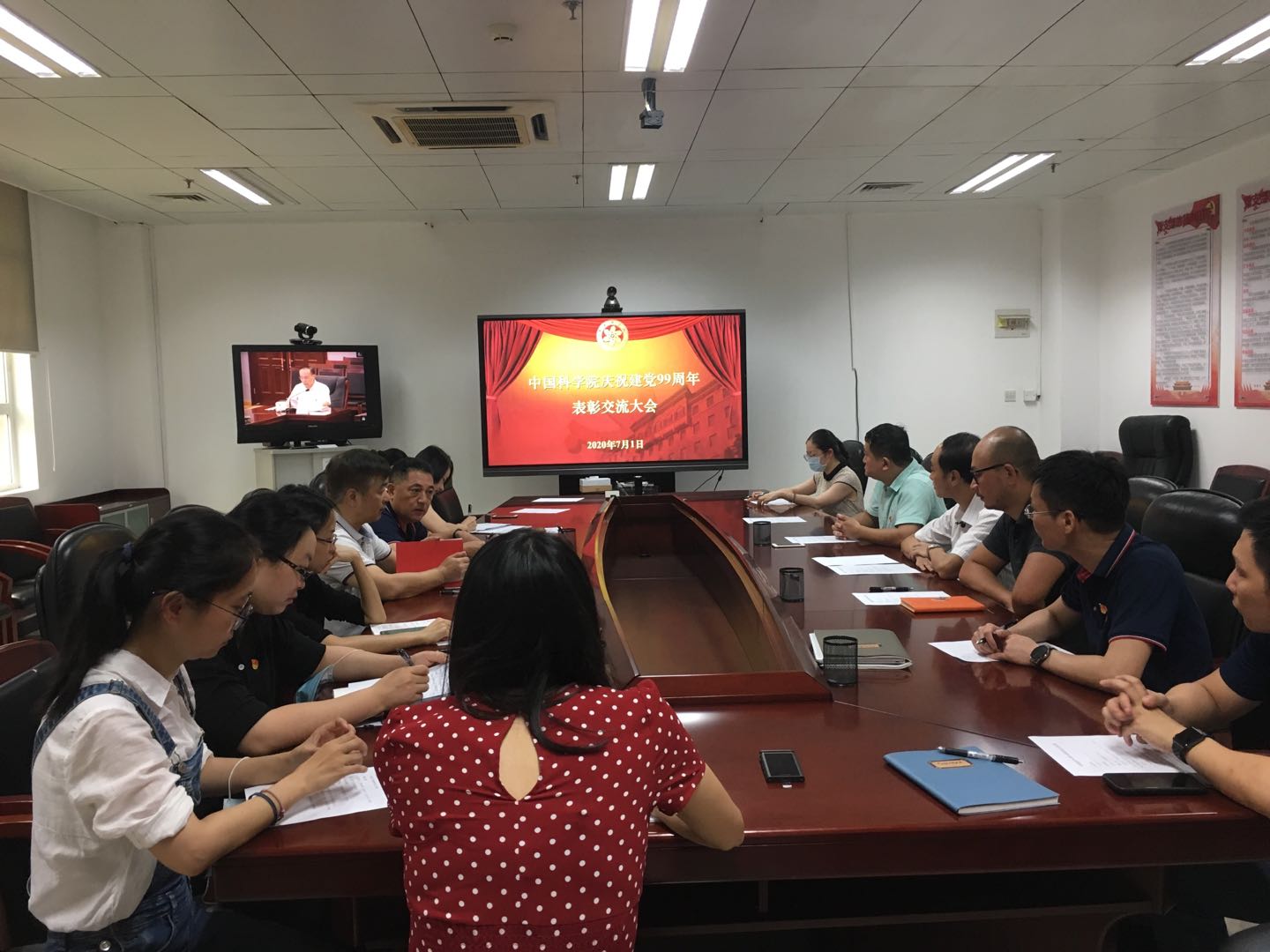 7月1日上午,中國科學(xué)院召開慶祝建黨99周年表彰交流大會視頻會。廣州健康院黨委書記、黨委副書記,紀(jì)委書記,黨辦主任,黨支部書記,獲獎個人和黨組織代表共計15人在廣州健康院分會場參加了大會。
