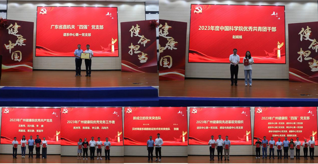 專題報告后舉行了新黨員入黨宣誓儀式,全體參會黨員重溫了入黨誓詞,表彰了獲得中國科學(xué)院共青團(tuán)優(yōu)秀干部和廣東省直“四強”黨支部等榮譽的先進(jìn)個人和集體、廣州健康院“兩優(yōu)一先”和“四強”黨支部,為新成立的貝時璋科技攻關(guān)團(tuán)隊授牌。