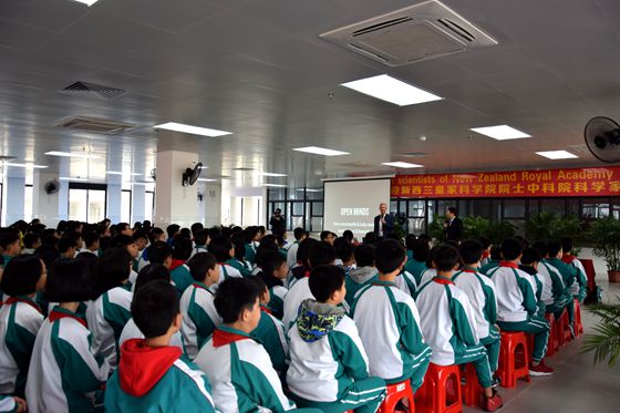 活動上,Rod Dunbar教授、廣州生物院李尹雄研究員、吳東海研究員等科學(xué)家分別作了《新西蘭教育與文化》、《我的科學(xué)故事》等主題講座。Rod告訴師生們,新西蘭的教育方式,更注重強調(diào)怎么讓小孩去“玩”,培養(yǎng)小孩的探索、創(chuàng)造力及創(chuàng)新能力。Rod還講到新西蘭的人文、土著毛利族,國鳥Kiwi(幾維鳥)、生態(tài)保護(hù)等方面,談到興致時,Rod歡快地唱起了歌。李尹雄研究員則通過自身做人做事的體會去引導(dǎo)學(xué)生如何樹立正確的人生觀和價值觀,并講述了自己在美國20年不改國籍的愛國故事。