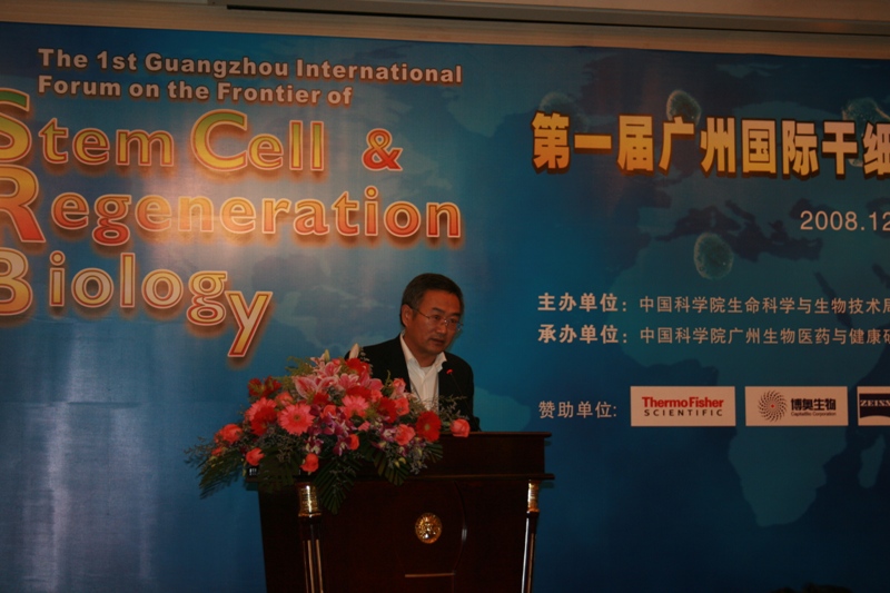 2008年12月14日,由中國科學院生命科學與生物技術局、廣東省科技廳、廣州市科技局、中國細胞生物學會主辦,我院承辦的“第一屆廣州國際干細胞與再生生物學前沿論壇”在廣州隆重舉行。美國麻省理工學院教授、2008年中科院愛因斯坦講席教授Rudolf Jaenisch博士,中國工程院院士李寧教授、中科院干細胞與克隆研究海外創(chuàng)新團隊成員、發(fā)育與生殖重大計劃專家組成員、973首席科學家以及其他國內外本領域知名專家,國家自然科學基金委員會綜合計劃局董爾丹副局長,廣州市科技局馬曙副局長,廣東省科技廳王玉龍?zhí)庨L,以及來自全國各地的科研人員、廣州干細胞與再生醫(yī)學技術聯盟等企事業(yè)單位代表250余人參加了會議。