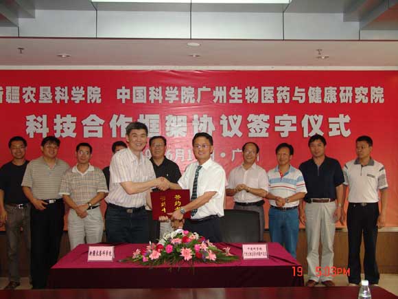 根據(jù)《關(guān)于進一步促進新疆經(jīng)濟社會發(fā)展的若干意見》(國發(fā)〔2007〕32號)文件精神,結(jié)合建設(shè)創(chuàng)新型國家的戰(zhàn)略部署和中國科學(xué)院加強與國家創(chuàng)新體系各單元聯(lián)合與合作的實際需求,6月19日,我院與新疆農(nóng)墾科學(xué)院隆重舉行了科技合作框架協(xié)議簽字儀式。