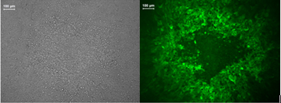 近年來,流感病毒的流行以及快速變異對人類健康提出了嚴(yán)峻的挑戰(zhàn),因此流感病毒的致病機(jī)理亟待進(jìn)一步闡明,人類也迫切需要更為安全有效的新型流感疫苗及抗流感藥物。廣州生物醫(yī)藥與健康研究院暨呼吸疾病國家重點(diǎn)實(shí)驗(yàn)室相關(guān)研究人員在陳凌(客座)研究員的指導(dǎo)下,通過對實(shí)驗(yàn)室用非致病株P(guān)R8流感病毒基因組NA片段進(jìn)行改造,整合入增強(qiáng)型綠色熒光蛋白報告基因(EGFP),同時保留了完整的流感病毒基因組的復(fù)制型甲型流感病毒,克服了之前其他的報道均是復(fù)制缺陷型流感病毒所存在的問題。攜帶報告基因的復(fù)制型甲型流感病毒可以在細(xì)胞以及雞胚中穩(wěn)定生長、傳代并表達(dá)報告基因,因此可以很好的的模擬野生型病毒;同時,報告基因的檢測便捷可靠,可用于篩選與評價抗流感病毒藥物和抗體。更有意義的是檢測報告基因的表達(dá)情況可以用來實(shí)時追蹤流感病毒在動物模型體內(nèi)的感染、生長與分布。因此,該成果不但為流感病毒的基礎(chǔ)研究,也為流感疫苗、抗流感病毒藥物和抗體的研發(fā)提供了強(qiáng)有力的工具。