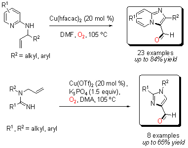 這一發(fā)現(xiàn)具有重要的學術價值:首先,該反應在構建雜環(huán)骨架的同時,利用氧氣來源在雜環(huán)骨架上引入一個十分重要的官能團---醛基; 其次,該反應使用廉價低毒的銅催化劑、清潔的氧氣為氧化劑,反應條件溫和;此外,該反應具有很高的成鍵效率和氧化效率,從簡單易得的原料,一步得到醛基取代的芳雜環(huán)結構。這一發(fā)現(xiàn)還有廣泛的應用前景,使用該方法為關鍵步驟,可以高效地合成神經(jīng)系統(tǒng)用藥奈可吡旦Necopidem,總收率從以往的21%提高到50%。