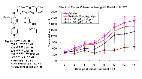 EGFR抑制劑Iressa和Tarceva是經(jīng)FDA批準(zhǔn)的治療非小細(xì)胞肺癌的藥物,在臨床上獲得了巨大的成功。但是,隨著其在臨床上的廣泛應(yīng)用,耐藥問題日益突出。其中,EGFRT790M突變約占臨床耐藥病人的50%以上。針對EGFR T790M突變的小分子抑制劑是克服這種耐藥的潛在策略。國外多個制藥公司和研究機(jī)構(gòu)都在開展對EGFR T790M突變的小分子抑制劑研究,但還沒有針對該突變的藥物上市。