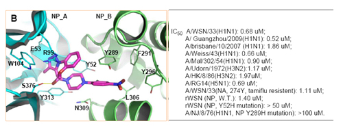 甲型流感是嚴(yán)重威脅人類健康的傳染性疾病。盡管目前在流感的防治方面,已有上市的疫苗和藥物,但是由于流感病毒的易突變并產(chǎn)生耐藥等特性,第一代抗病毒藥物金剛烷胺和第二代抗病毒藥物達(dá)菲已出現(xiàn)了嚴(yán)重的耐藥性和副作用。因此,開發(fā)出具有新作用機(jī)制安全有效的抗甲型流感藥物變得十分重要。