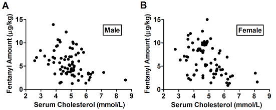 廣州生物院鄭輝博士研究組發(fā)現(xiàn),在人胚胎腎細(xì)胞(HEK)、原代培養(yǎng)的大鼠海馬區(qū)神經(jīng)細(xì)胞以及成年小鼠體內(nèi),低于正常的膽固醇水平會(huì)阻礙μ型阿片受體的信號(hào)轉(zhuǎn)導(dǎo)和其介導(dǎo)的鎮(zhèn)痛作用。研究組與北京中日友好醫(yī)院合作,發(fā)現(xiàn)病人血液總膽固醇水平與手術(shù)麻醉時(shí)使用的芬太尼的劑量成負(fù)相關(guān)。該研究成果已于2012年2月在國(guó)際期刊《Journal of Lipid Research》上在線發(fā)表(doi: 10.1194/jlr.M024455)。