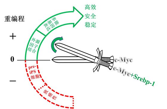 2006年,日本科學(xué)家Yamanaka成功利用四個(gè)轉(zhuǎn)錄因子Oct4、Sox2、Klf4和c-Myc將小鼠胚胎成纖維細(xì)胞誘導(dǎo)成了多能性干細(xì)胞(iPSC)。其中,原癌基因c-Myc是重編程體系中的雙刃劍。一方面,c-Myc能調(diào)控一系列生理過(guò)程包括細(xì)胞周期、細(xì)胞增殖、代謝轉(zhuǎn)換、信號(hào)轉(zhuǎn)導(dǎo)以及多能性基因的表達(dá)等從而極大促進(jìn)體細(xì)胞重編程。在重編程過(guò)程中,它還能招募組蛋白乙酰轉(zhuǎn)移酶以及促進(jìn)其它重編程因子對(duì)染色質(zhì)的結(jié)合。但是,另一方面,c-Myc同時(shí)也會(huì)導(dǎo)致許多不完全重編程細(xì)胞的形成(pre-iPS細(xì)胞半成品),而且有極大的致癌風(fēng)險(xiǎn)。這為iPS細(xì)胞的應(yīng)用帶來(lái)了極大的低效障礙和安全風(fēng)險(xiǎn)。