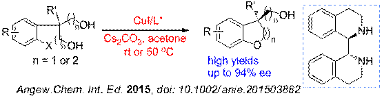 中科院廣州生物醫(yī)藥與健康研究院蔡倩博士課題組在銅催化不對(duì)稱C-O偶聯(lián)反應(yīng)研究中取得重要進(jìn)展,相關(guān)成果已于2015年6月8日在《德國(guó)應(yīng)用化學(xué)》上在線發(fā)表(Angew. Chem. Int. Ed. 2015. DOI: 10.1002/anie.201503882)。