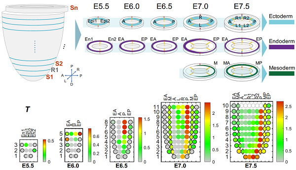 通過經(jīng)典的細胞標記移植和譜系追蹤等方法,發(fā)育生物學家在上世紀八九十年代已經(jīng)初步建立了小鼠胚胎的細胞命運圖譜。這些研究發(fā)現(xiàn),細胞的空間位置對于細胞命運具有重要的影響。例如,各胚層的前體細胞在原腸胚形成之前的上胚層中具有特定的空間區(qū)域,而當原腸運動完成后,前端外胚層細胞將按照頭尾(Cranio-caudal)的次序,發(fā)育為大腦及脊髓等具有嚴謹前后次序的中樞神經(jīng)系統(tǒng)。然而小鼠早期胚胎發(fā)育、特別是原腸運動時期的胚層譜系建立及細胞命運決定的分子機制尚不清晰,亟需從時間和空間尺度,在全基因組層面闡釋其調(diào)控關系。