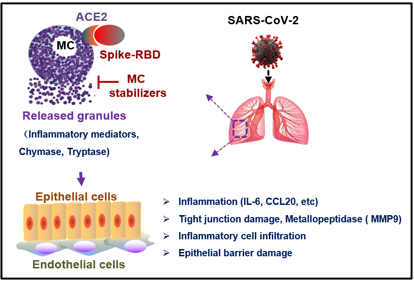 新冠病毒通過誘導(dǎo)肺部肥大細(xì)胞脫顆粒誘發(fā)肺上皮細(xì)胞炎癥和導(dǎo)致肺損傷。