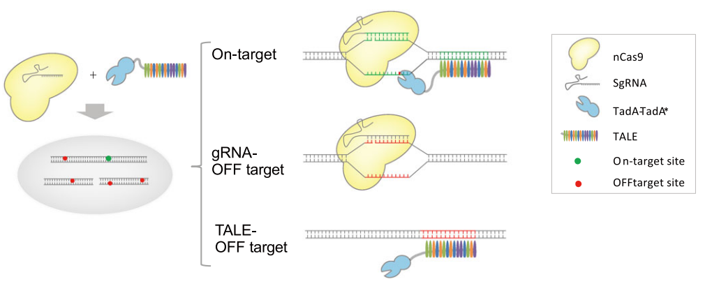在TaC9-ABE堿基編輯系統(tǒng)中,研究人員將nCas9與gRNA連接,而腺嘌呤脫氨酶與另一個(gè)具有導(dǎo)航作用的TALE相連接。nCas9在gRNA引導(dǎo)下,結(jié)合到目標(biāo)DNA位點(diǎn),打開(kāi)并切割雙鏈靶DNA形成單鏈DNA,同時(shí),腺嘌呤脫氨酶在TALE引導(dǎo)下結(jié)合到相同的靶位點(diǎn),脫氨酶即可對(duì)靶向鏈DNA進(jìn)行編輯,實(shí)現(xiàn)靶位點(diǎn)的A到G突變。如果nCas9被gRNA帶到錯(cuò)誤的位點(diǎn),由于沒(méi)有脫氨酶的存在,A到G的轉(zhuǎn)換就不能發(fā)生,同理,如果脫氨酶被TALE引導(dǎo)至錯(cuò)誤的位點(diǎn),由于沒(méi)有nCas9的存在,不能形成單鏈DNA,脫氨酶發(fā)揮不了作用,A到G的轉(zhuǎn)換也不能發(fā)生,這樣就徹底地排除了發(fā)生Cas9依賴(lài)性脫靶的可能性。研究結(jié)果證實(shí),TaC9-ABE堿基編輯系統(tǒng)在保證高效但堿基編輯的同時(shí),對(duì)gRNA依賴(lài)的脫靶位點(diǎn)以及TALE依賴(lài)的脫靶位點(diǎn)進(jìn)行深度測(cè)序均未檢測(cè)到脫靶現(xiàn)象,而傳統(tǒng)的ABE編輯器在大約50%的預(yù)測(cè)脫靶位點(diǎn)都發(fā)生了脫靶編輯。本研究為基因編輯動(dòng)植物的培育和人類(lèi)遺傳性疾病的基因治療提供了一個(gè)安全的單堿基編輯工具。