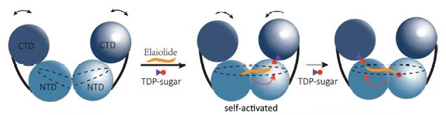 Elaiophylin是一種含有16元環(huán)的天然大環(huán)內(nèi)酯類抗生素,具有獨特的C2對稱性,兩端各有一個脫氧糖基。該抗生素結(jié)構(gòu)新穎,具有廣譜的抗菌及抗腫瘤活性等,因此引起廣泛關(guān)注。ElaGT(elaiophylin glycosyltransferase)是負責elaiophylin糖基對稱轉(zhuǎn)移的酶,是潛在的酶學工具,可擴展Elaiophylin及類似物的結(jié)構(gòu)多樣性和活性。