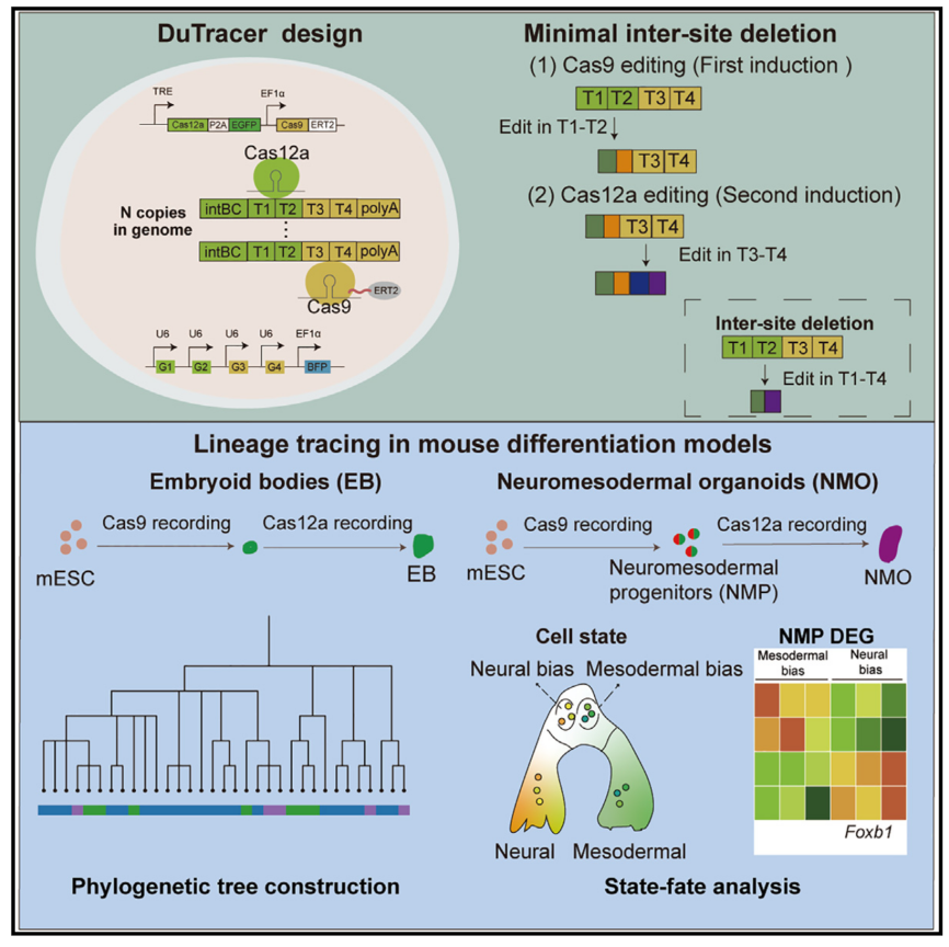 2025年1月28日,中國(guó)科學(xué)院廣州生物醫(yī)藥與健康研究院彭廣敦研究團(tuán)隊(duì)在《細(xì)胞·報(bào)告》(Cell Reports)發(fā)表重要研究成果,成功開發(fā)出名為“DuTracer”的新型單細(xì)胞譜系示蹤技術(shù)。該技術(shù)通過巧妙結(jié)合兩種基因編輯工具CRISPR-Cas9和Cas12a,顯著提升了細(xì)胞譜系追蹤的精度和深度,為解析胚胎發(fā)育、器官再生及疾病機(jī)制提供了全新工具。