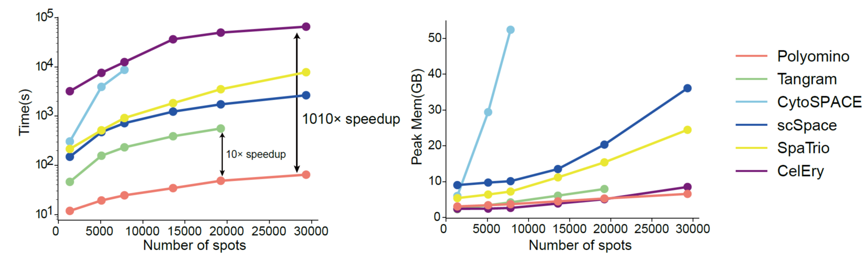 Polyomino通過多層區(qū)域約束實現(xiàn)單細胞空間定位,顯著提高了計算效率