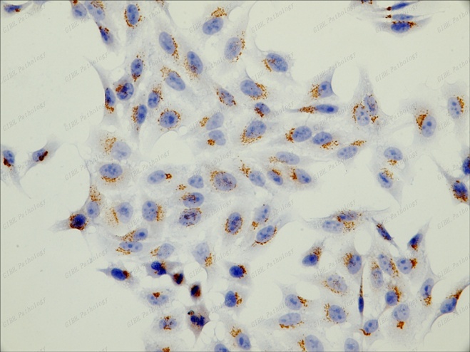 肝癌細胞爬片5B5染色,高爾基體著色-2