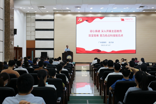 7月7日,廣州健康院召開學(xué)習(xí)貫徹習(xí)近平新時代中國特色社會主義思想主題教育黨員大會暨慶祝建黨102周年大會。黨委書記段子淵作題為《凝心鑄魂 深入開展主題教育,攻堅克難 努力搶占科技制高點》的黨課報告,黨委副書記、紀委書記侯紅明主持大會。