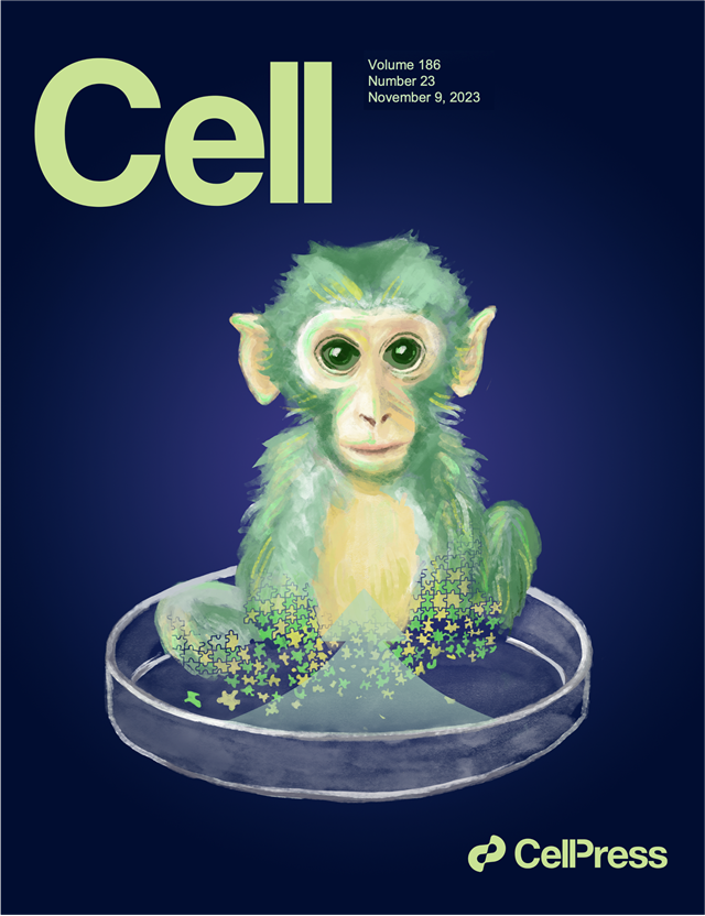 2023年11月9日,《Cell》期刊以封面文章的形式在線發(fā)表題為《Live birth of chimeric monkey with high contribution from embryonic stem cells》(高比例胚胎干細(xì)胞貢獻的出生存活嵌合體猴)的研究論文。該研究由中國科學(xué)院腦科學(xué)與智能技術(shù)卓越創(chuàng)新中心(神經(jīng)科學(xué)研究所)劉真研究組、孫強研究團隊和中國科學(xué)院廣州生物醫(yī)藥與健康研究院Miguel A. Esteban研究組合作完成。該研究在國際上首次成功構(gòu)建了高比例胚胎干細(xì)胞貢獻的出生存活嵌合體猴,并證實了猴胚胎干細(xì)胞可以高效的貢獻到胚外胎盤組織和生殖細(xì)胞。這對于理解靈長類胚胎干細(xì)胞全能性具有重要意義,為遺傳修飾模型猴的構(gòu)建奠定了技術(shù)基礎(chǔ)。