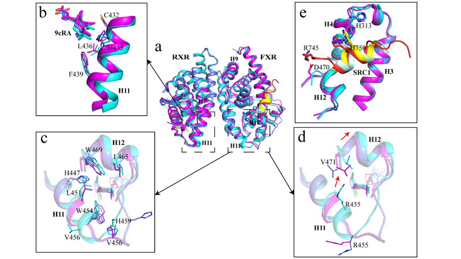 配體引起的FXR/RXR異二聚體H11的末端的構(gòu)象變化