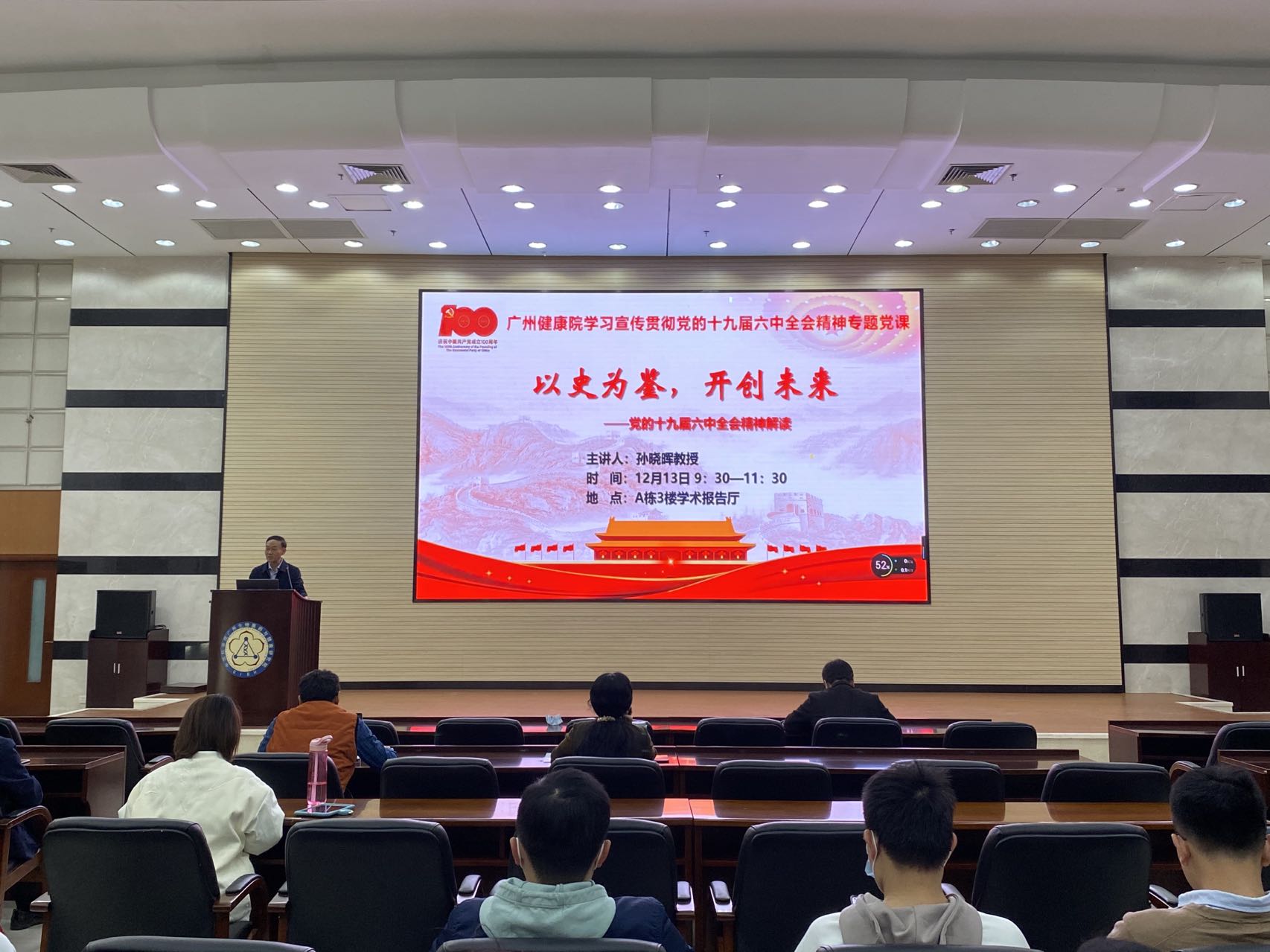 為深入學(xué)習(xí)宣傳貫徹黨的十九屆六中全會(huì)精神,12月13日上午,中國科學(xué)院廣州生物醫(yī)藥與健康研究院邀請廣東財(cái)經(jīng)大學(xué)馬克思主義學(xué)院孫曉暉教授作專題黨課報(bào)告。報(bào)告由黨委書記段子淵主持。