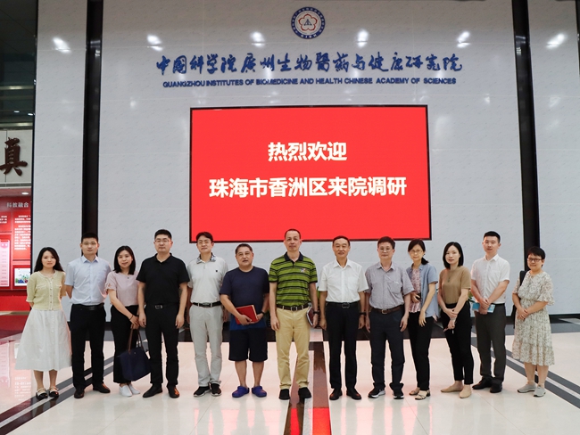 6月2日,珠海市香洲區(qū)政府副區(qū)長(zhǎng)黃文勝一行到中國(guó)科學(xué)院廣州生物醫(yī)藥與健康研究院進(jìn)行交流訪問。廣州健康院黨委書記段子淵、副院長(zhǎng)李尹雄等接待了來賓一行。