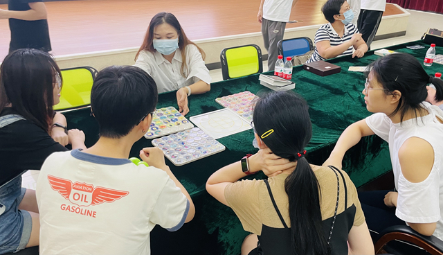 活動(dòng)中,廣州市心理咨詢師協(xié)會(huì)老師將參加活動(dòng)的學(xué)生進(jìn)行分組,使用曼陀羅動(dòng)力棋、OH卡等趣味心理體驗(yàn)工具與同學(xué)們進(jìn)行互動(dòng)心理游戲,引導(dǎo)同學(xué)們通過心理繪畫的形式檢測自身的心理狀態(tài)。通過以上活動(dòng),心理老師幫助同學(xué)們進(jìn)一步探索自我、提升心理能量,引導(dǎo)同學(xué)們?nèi)绾蚊鎸Щ蠛徒箲],找尋釋放壓力的方法和途徑。