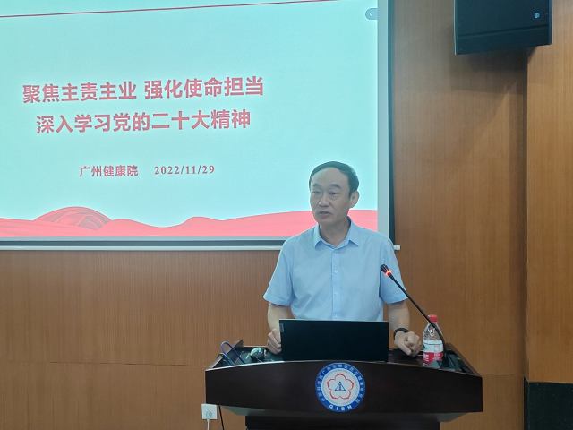 2022年11月29日,中國(guó)科學(xué)院廣州生物醫(yī)藥與健康研究院召開(kāi)二十大精神宣貫暨“十四五”規(guī)劃實(shí)施工作研討會(huì)。會(huì)議學(xué)習(xí)宣傳貫徹黨的二十大精神和中科院人才相關(guān)重要文件精神,并對(duì)落實(shí)中科院“基礎(chǔ)研究十條”、推進(jìn)“十四五”規(guī)劃實(shí)施相關(guān)內(nèi)容進(jìn)行部署和研討。廣州健康院院領(lǐng)導(dǎo)班子、課題組長(zhǎng)、行政管理部門副處級(jí)以上人員、支撐中心公共平臺(tái)負(fù)責(zé)人等50余人參加會(huì)議,會(huì)議由黨委副書(shū)記、紀(jì)委書(shū)記侯紅明主持。本次會(huì)議嚴(yán)格落實(shí)疫情防控要求,采用線上、線下相結(jié)合方式舉行。