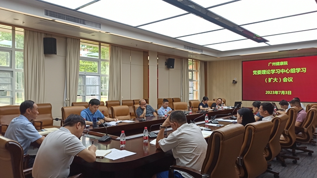 7月3日,廣州健康院召開黨委理論學習中心組學習擴大會,學習貫徹習近平新時代中國特色社會主義思想,專題學習習近平《論科技自立自強》,黨委書記段子淵主持會議。