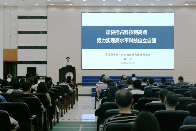 孫飛副院長(zhǎng)(主持工作)作了《加快搶占科技制高點(diǎn),努力實(shí)現(xiàn)高水平科技自立自強(qiáng)》的報(bào)告。傳達(dá)了周琪副院長(zhǎng)調(diào)研健康院講話(huà)精神,講解了研究院搶占科技制高點(diǎn)的工作思路,并對(duì)下一階段的重點(diǎn)工作進(jìn)行了部署。孫飛指出,廣州健康院有著良好的科研積累和工作基礎(chǔ),全體人員要直面問(wèn)題,增強(qiáng)自信,以搶占科技制高點(diǎn)為目標(biāo),再布局再出發(fā)。通過(guò)重大任務(wù)的承擔(dān)和實(shí)施,更好地履行國(guó)家戰(zhàn)略科技力量主力軍的使命擔(dān)當(dāng),進(jìn)一步提升研究院科技創(chuàng)新能力和國(guó)際影響力。