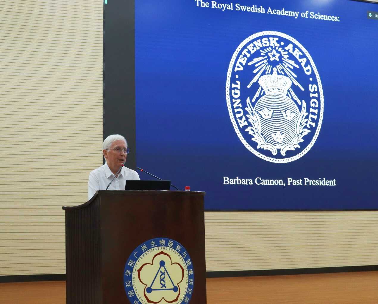 2025年10月21日,中國科學(xué)院廣州生物醫(yī)藥與健康研究院(以下簡稱“廣州健康院”)邀請瑞典皇家科學(xué)院院士、瑞典斯德哥爾摩大學(xué)Barbara Cannon院士、Jan Nedergaard院士蒞臨開展學(xué)術(shù)交流并作學(xué)術(shù)報告。本次活動由劉興國研究員主持,吸引院內(nèi)近百名師生及科研人員參與。