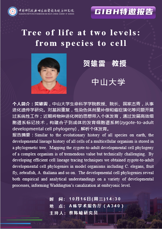 2024年10月16日特邀報(bào)告:Tree of life at two levels: from species to cell