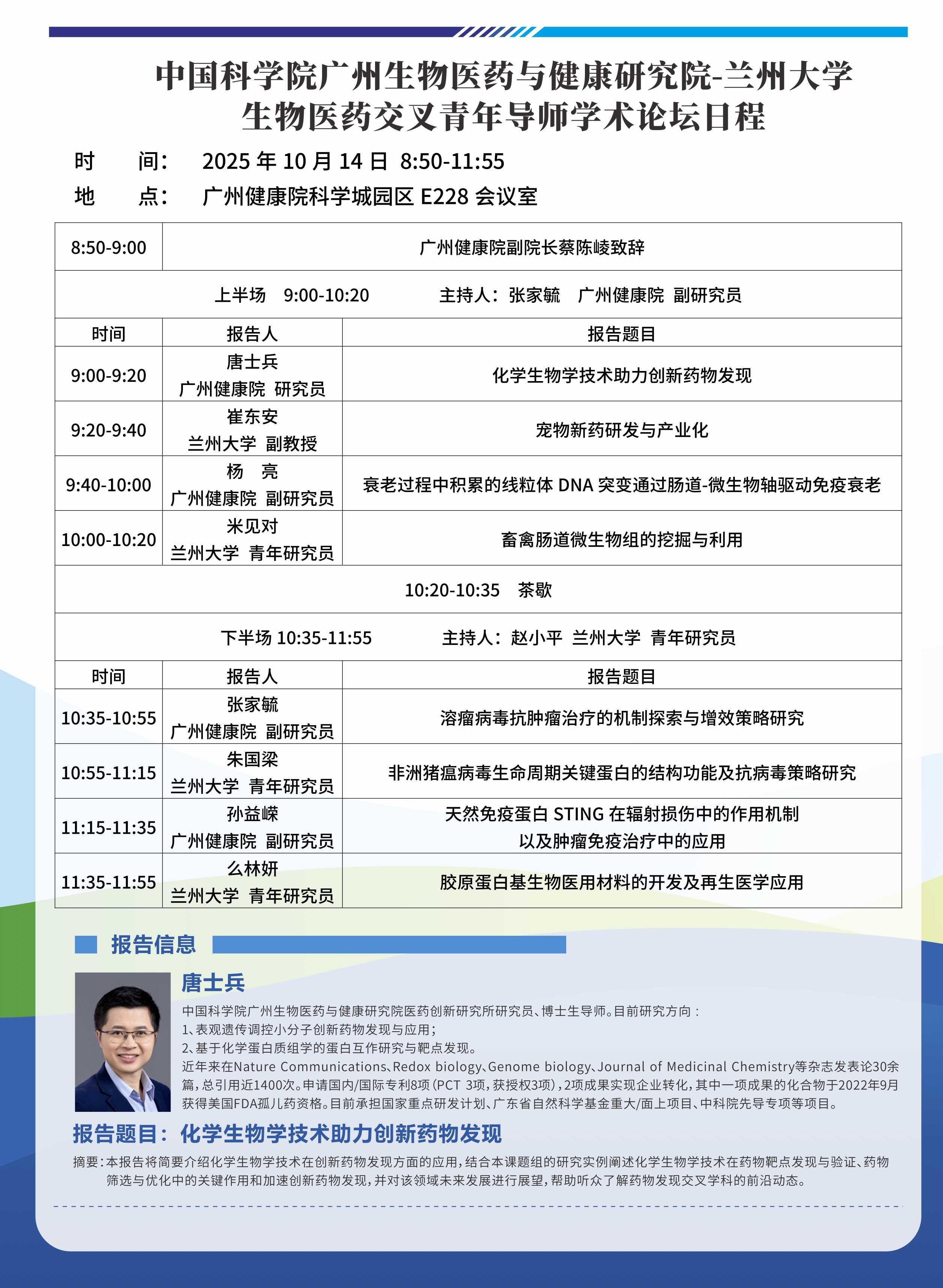 中國科學院廣州生物醫(yī)藥與健康研究院-蘭州大學生物醫(yī)藥交叉青年導師學術論壇