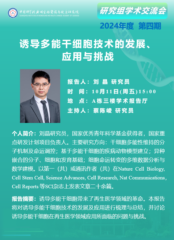 2024年10月11日研究組學(xué)術(shù)交流會(2024年第四期):誘導(dǎo)多能干細(xì)胞技術(shù)的發(fā)展、 應(yīng)用與挑戰(zhàn)