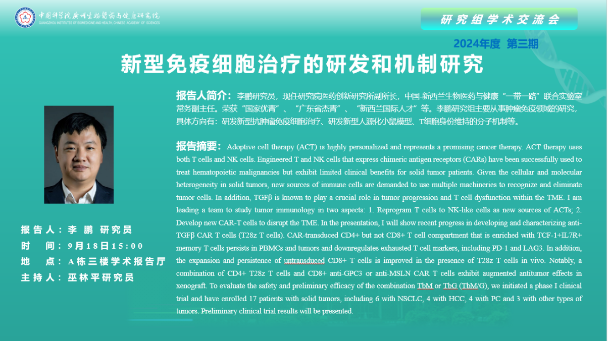 2024年9月18日研究組學(xué)術(shù)交流會(2024年第三期):新型免疫細胞治療的研發(fā)和機制研究