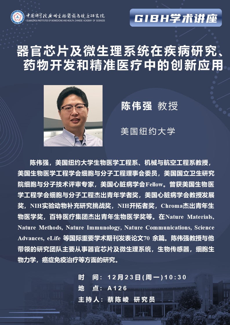 2024年12月23日學(xué)術(shù)講座:器官芯片及微生理系統(tǒng)在疾病研究、藥物開發(fā)和精準(zhǔn)醫(yī)療中的創(chuàng)新應(yīng)用