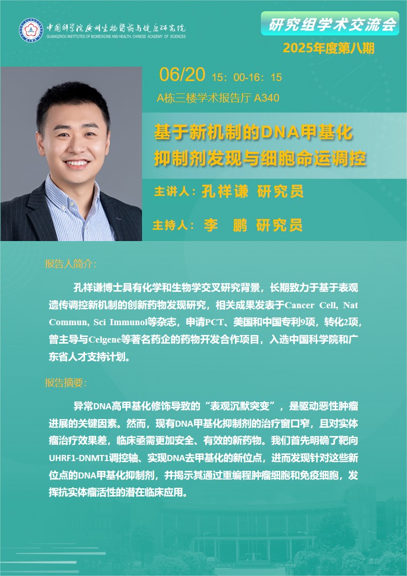 2025年6月20日研究組學術交流會(2025年度第八期):基于新機制的DNA甲基化抑制劑發(fā)現(xiàn)與細胞命運調(diào)控