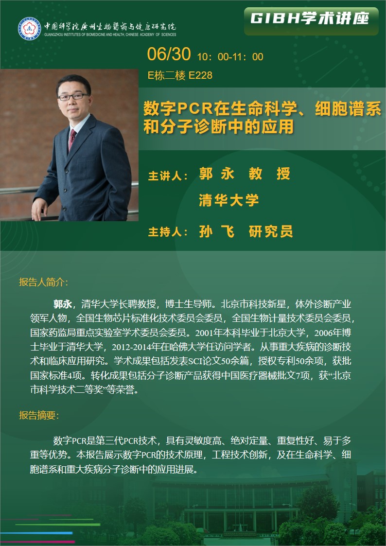 2025年6月30日講座:數(shù)字PCR在生命科學、細胞譜系和分子診斷中的應用