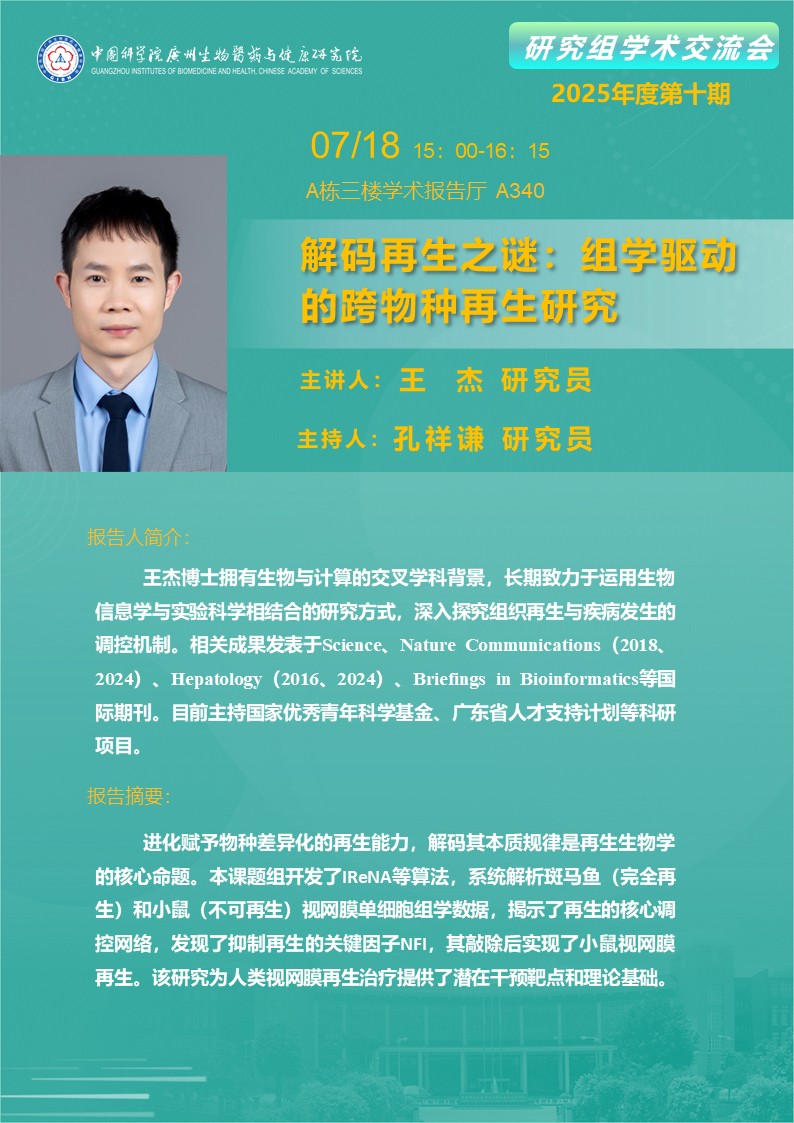 2025年7月18日研究組學術(shù)交流會(2025年度第十期):解碼再生之謎:組學驅(qū)動的跨物種再生研究