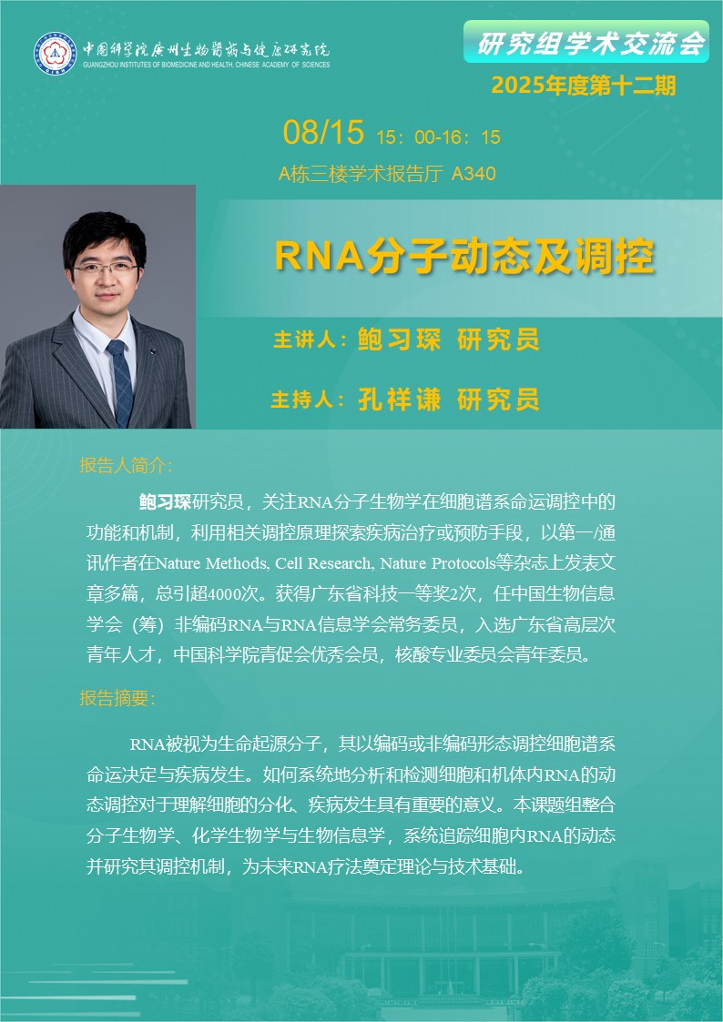 2025年8月15日研究組學術交流會(2025年度第十二期):RNA分子動態(tài)及調(diào)控