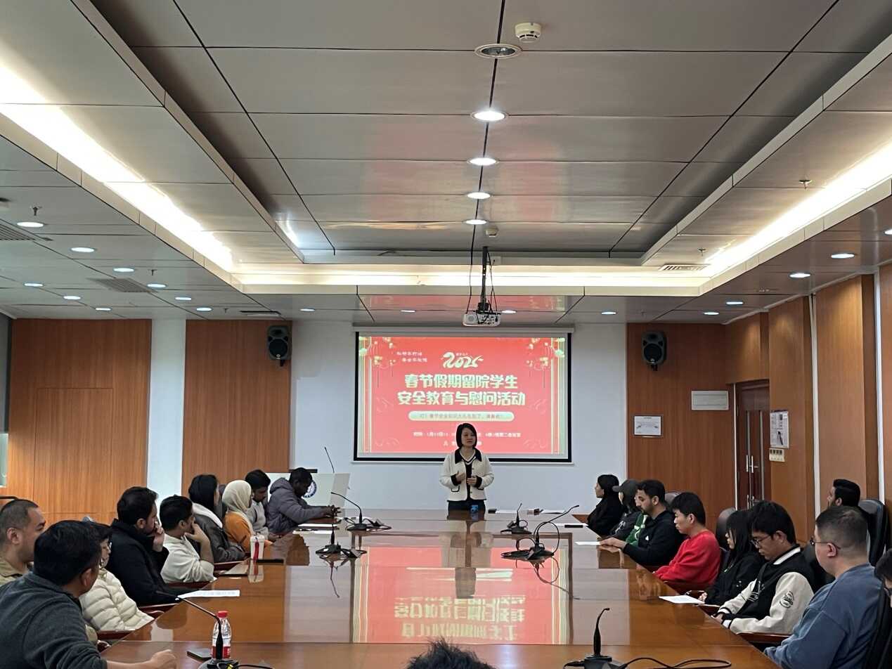 活動伊始,院領(lǐng)導向同學們致以誠摯的新春祝福,對假期堅守科研崗位的同學們表達親切的慰問。他強調(diào),同學們在開展科研工作時一定要把安全放在首位,做好安全防護,同時要保持規(guī)律作息和適當?shù)腻憻?,希望大家度過一個平安、祥和、愉快的假期。研究生部主任鄭小潔向同學們進行了包括人身與財產(chǎn)安全、實驗安全、交通安全、消防安全、網(wǎng)絡安全、食品安全、防詐騙等方面的安全教育和遵紀守法教育,重點強調(diào)冬季用火用電安全。隨后,研究生部組織假期留院學生集中學習有關(guān)安全規(guī)定,簽署安全承諾書,并為留院學生發(fā)放慰問品。