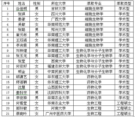 經(jīng)我院招生工作領(lǐng)導(dǎo)小組考核,2017年我院擬錄取推薦免試碩士(碩博連讀)研究生21名,