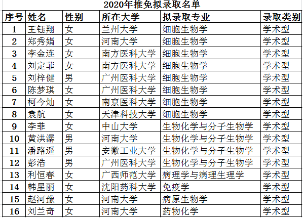 經(jīng)我院招生工作小組考核,2020年我院擬錄取推薦免試碩士(碩博連讀)研究生16名,其中碩博連讀研究生(學(xué)術(shù)型)16名?,F(xiàn)將名單公示如下:
