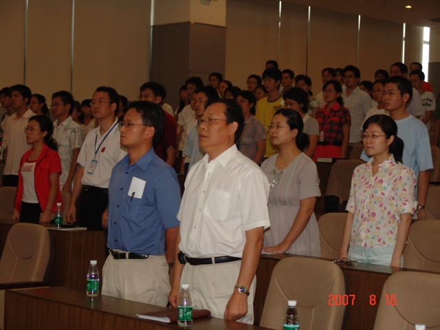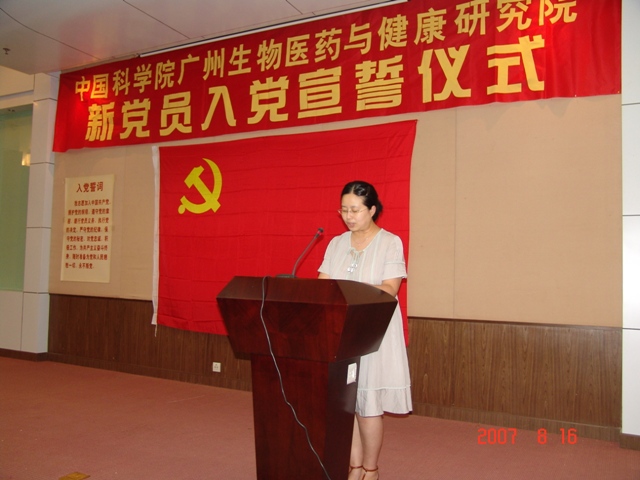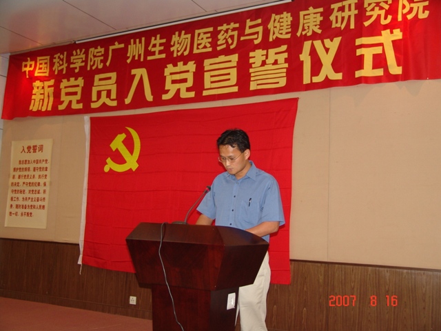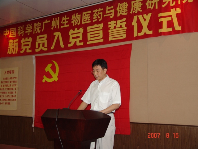 最后,黃建沖書記作了重要講話。他指出,宣誓儀式對于新入黨的同志,是其生命歷程中具有重要紀念意義的光榮時刻;對于已經(jīng)入黨的同志,是重溫入黨誓詞的活動;對于入黨積極分子,是一堂生動的黨課教育。他在講話中回顧了黨的光輝歷程,并指出,做一名共產(chǎn)黨員是光榮的、自豪的,要牢記肩負的責(zé)任和使命,要在任何時候把國家的利益、民族的利益、人民的利益放在首位,要做到思想上始終清醒、政治上始終堅定、作風(fēng)上始終務(wù)實、工作上不斷創(chuàng)新。他在會上分析了我院建院工作所取得的成績和具備的優(yōu)勢,同時指出了研究院在可持續(xù)發(fā)展中面臨的一些困難和不容忽視的問題。黃書記強調(diào),我們要切實加強研究院黨組織的思想建設(shè)、組織建設(shè)和作風(fēng)建設(shè),要堅定不移、扎實有效地發(fā)揮黨委的政治核心作用,黨支部的戰(zhàn)斗堡壘作用和黨員的先鋒模范作用,要將優(yōu)秀的科研人員、管理人員、研究生吸收到黨內(nèi)來,壯大黨的力量,要不斷提高黨組織的戰(zhàn)斗力和凝聚力,為研究院的發(fā)展提供強有力的保障。他強調(diào),全體黨員要以國家利益和民族利益為重,以研究院建設(shè)和發(fā)展的大局為重,增強服務(wù)國家目標(biāo)的責(zé)任感和自豪感,增強建設(shè)一流研究院的緊迫感和使命感,號召黨員同志在本職崗位上努力工作,唯真求實,勇于拼搏,多做貢獻,以實際行動迎接黨的十七大的勝利召開!