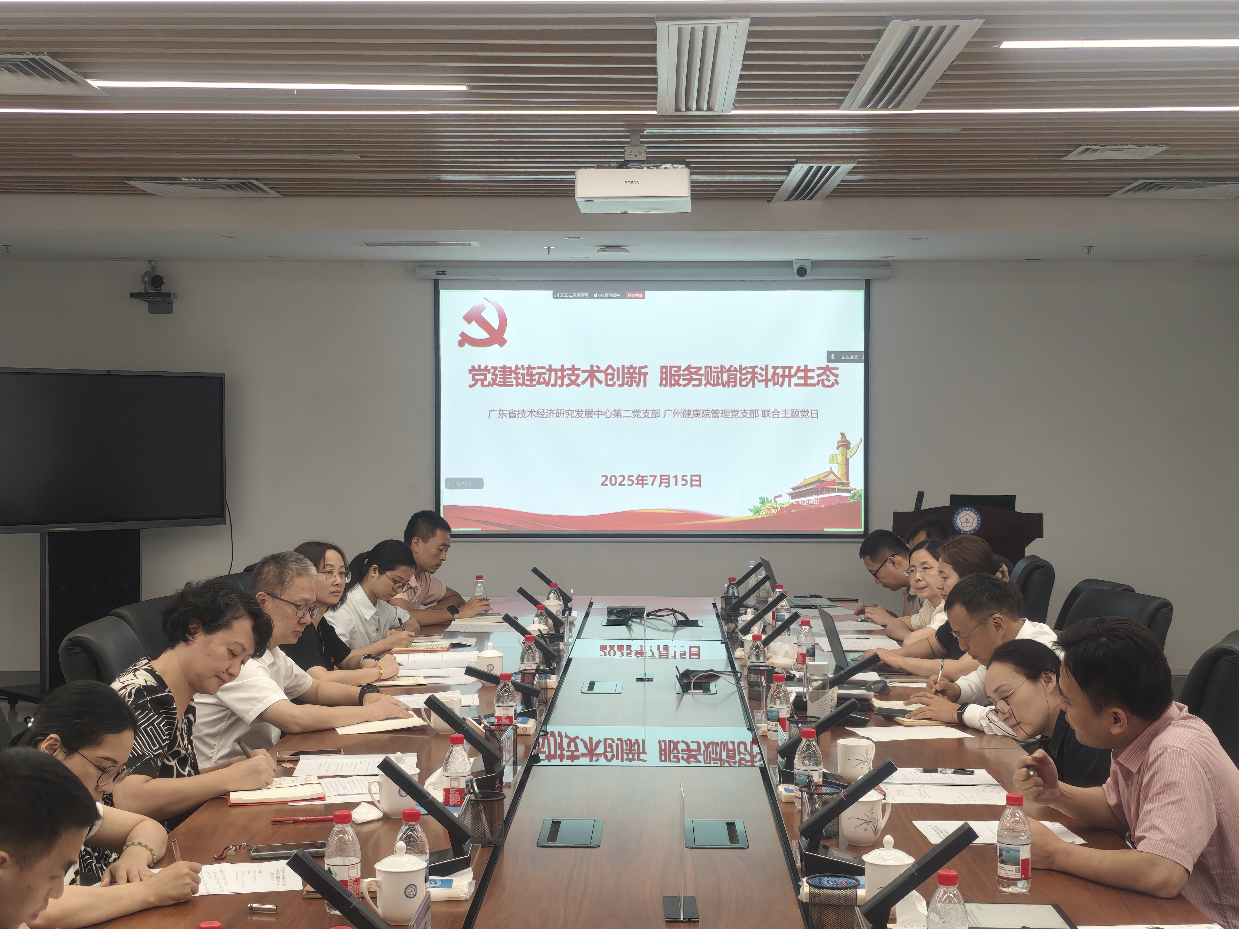 為推動黨建與業(yè)務深度融合,7月15日,管理黨支部與廣東省技術(shù)經(jīng)濟研究發(fā)展中心第二黨支部聯(lián)合開展“黨建鏈動技術(shù)創(chuàng)新 服務賦能科研生態(tài)”主題黨日。
