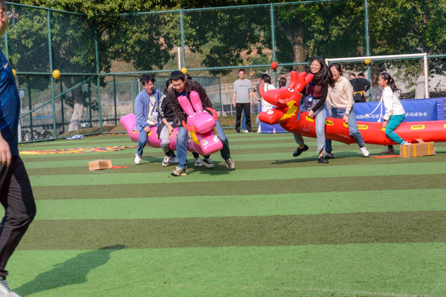 賽場(chǎng)上,參賽者就神龍吐珠、雙龍戲珠、青春風(fēng)火輪等12項(xiàng)比賽展開(kāi)了激烈的角逐,爭(zhēng)相完成各項(xiàng)游戲任務(wù)。大家手腳并用,竭盡全力,場(chǎng)面歡樂(lè)而激動(dòng)人心。運(yùn)動(dòng)會(huì)為迎接龍年而設(shè)計(jì)的比賽“雙龍戲珠”吸引了眾多觀眾的目光。游戲設(shè)計(jì)新穎,隊(duì)員們緊握“龍身”,全力以赴地向目標(biāo)飛奔,充分展現(xiàn)團(tuán)結(jié)協(xié)作的力量。除競(jìng)技項(xiàng)目外,活動(dòng)還設(shè)置了許多娛樂(lè)項(xiàng)目。投壺游戲、珠行萬(wàn)里、合力建塔等讓大家盡情揮灑才藝和活力。