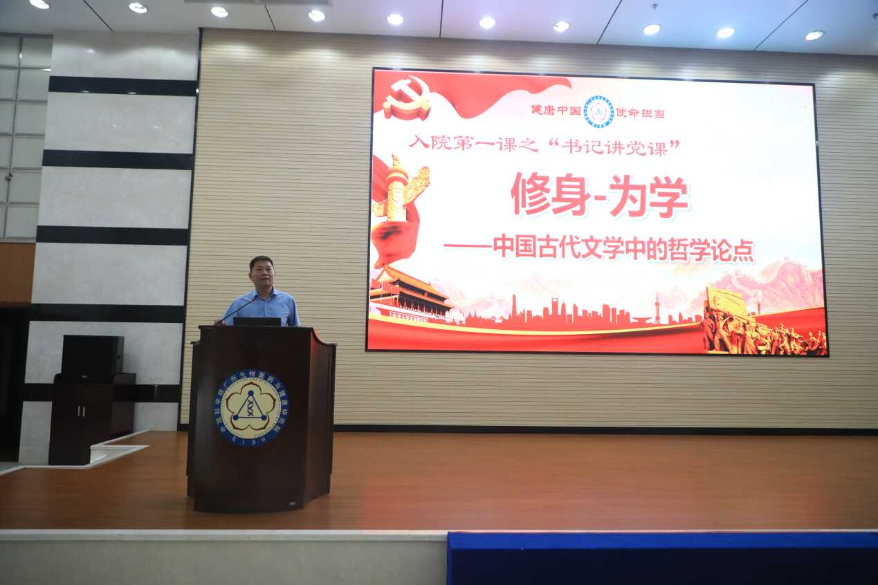 隨后黨委書記、副院長張鴻翔以“修身、為學(xué)——中國古代文學(xué)中的哲學(xué)論點(diǎn)”為題,為同學(xué)們講授“入院第一課”。他借中國古典文本中的智慧,深刻闡釋“修身”與“治學(xué)”之間的內(nèi)在聯(lián)系與哲學(xué)意涵,教導(dǎo)同學(xué)們汲取先賢哲思,涵養(yǎng)學(xué)術(shù)品格,堅(jiān)定科學(xué)報(bào)國、科技強(qiáng)國的理想信念,努力成長為有理想、有本領(lǐng)的新時(shí)代優(yōu)秀青年。?