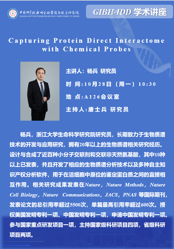 2024年10月28日GIBH-IDD 學術(shù)講座:Capturing Protein Direct Interactome with Chemical Probes
