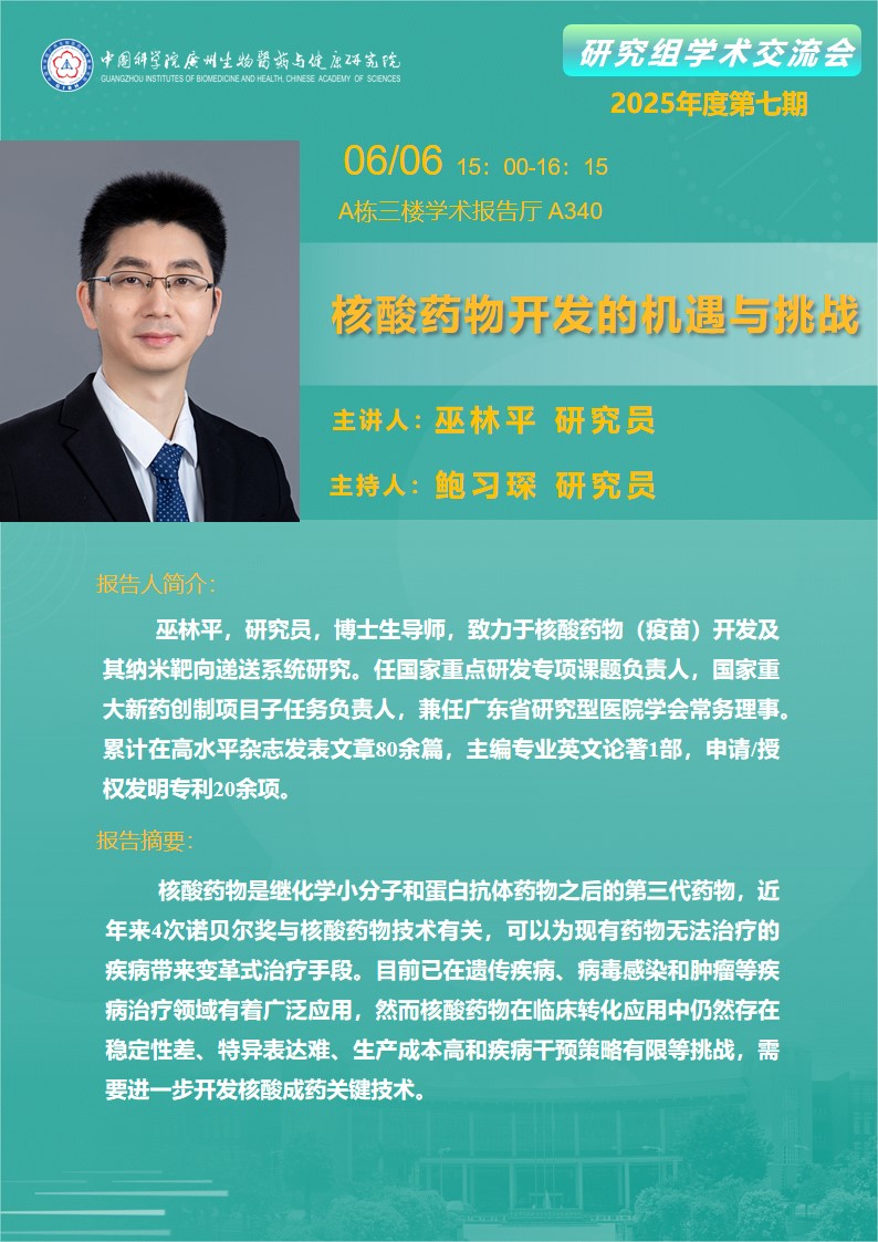 2025年6月6日研究組學術(shù)交流會(2025年度第七期):核酸藥物開發(fā)的機遇與挑戰(zhàn)